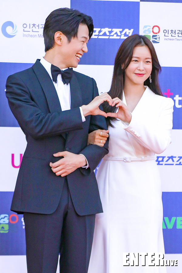 | 시상식레드카펫 [Elive포토] 이학주X경수진, 함께 하트 |