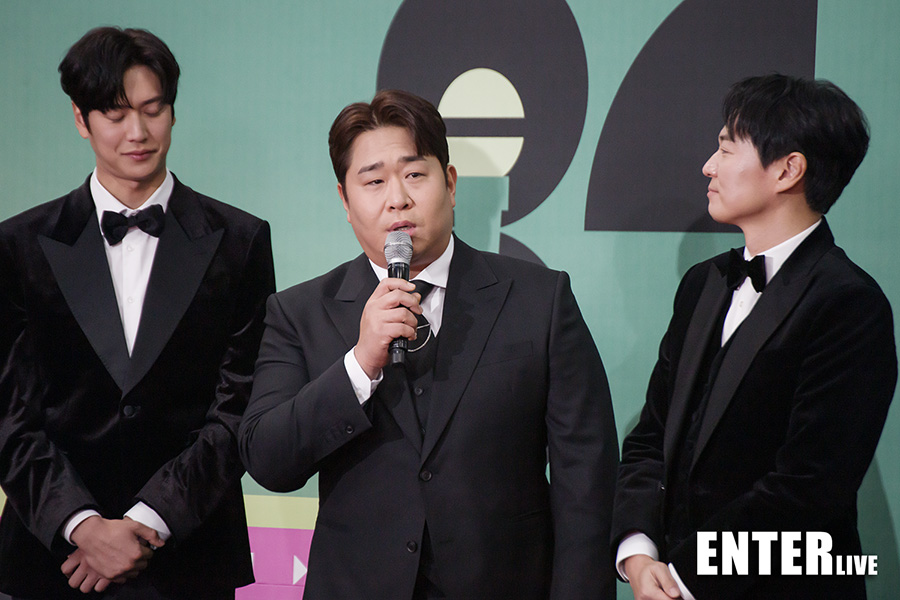 | 시상식레드카펫 [Elive포토] 나인우X문세윤X연정훈 '1박2일' 대상 수상하면 김종민 장가 보내요~! |
