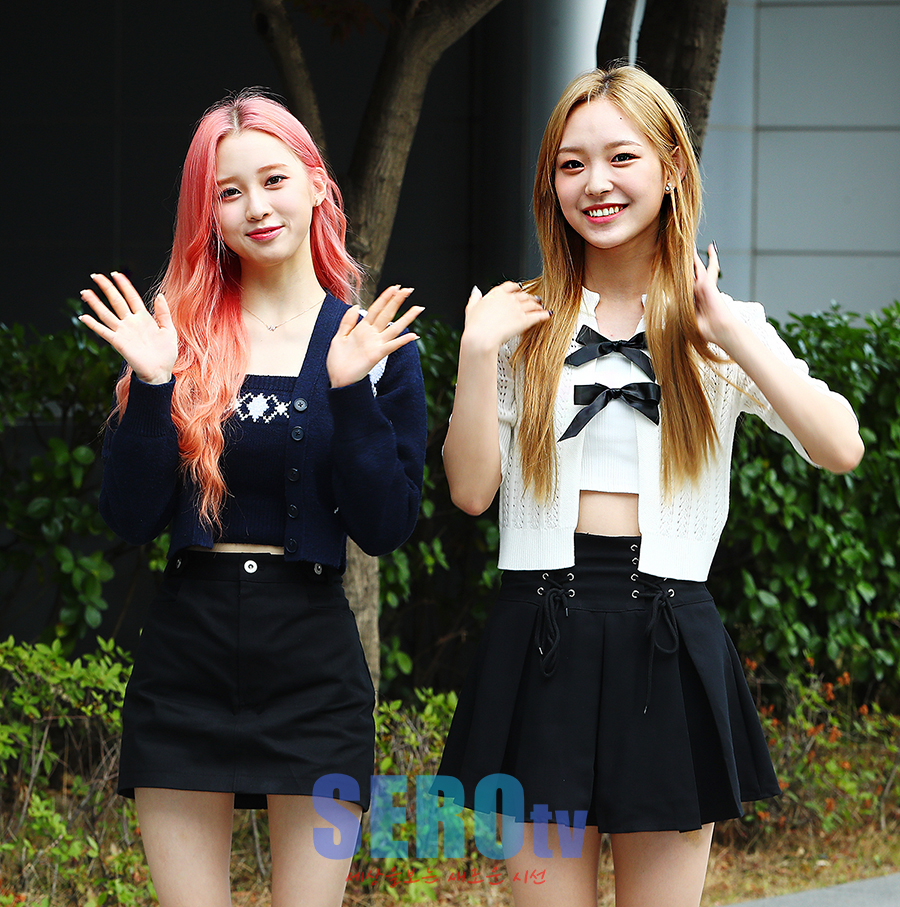 | 출근길패션 [세로포토] 라잇썸 나영X유정 '핑크 요정과 금빞 요정' |